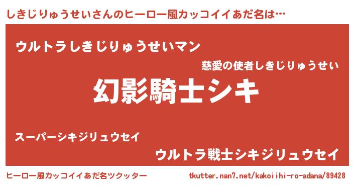| 男性向けラノベタイトル風あだ名 | 『しきじりゅうせいの嫁は女の子じゃないと思った?』 |