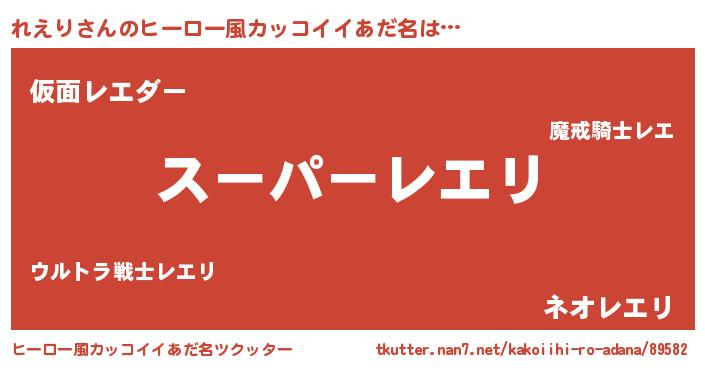 | 男性向けラノベタイトル風あだ名 | 『れえりの憂鬱』『魔弾の王とれえり』 |