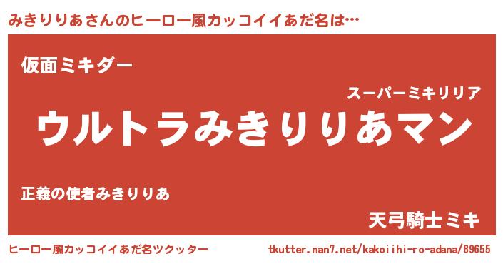 | ファンタジー風あだ名 | 『カークミキラー』『ユリミキヴァット』 |