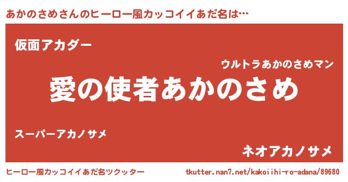 | 女子向けラノベタイトル風あだ名 | 『あかのさめ恋絵巻』 |