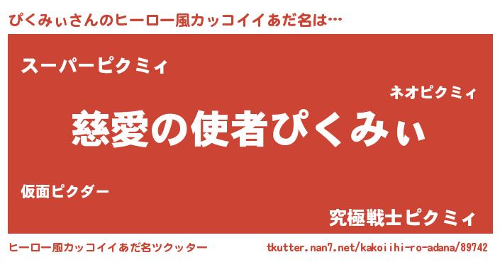 | 女子向けラノベタイトル風あだ名 | 『死神ぴくみぃの再婚』 |