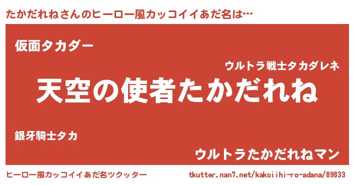 | 男性向けラノベタイトル風あだ名 | 『ノーゲーム・ノータカダレネ』 |