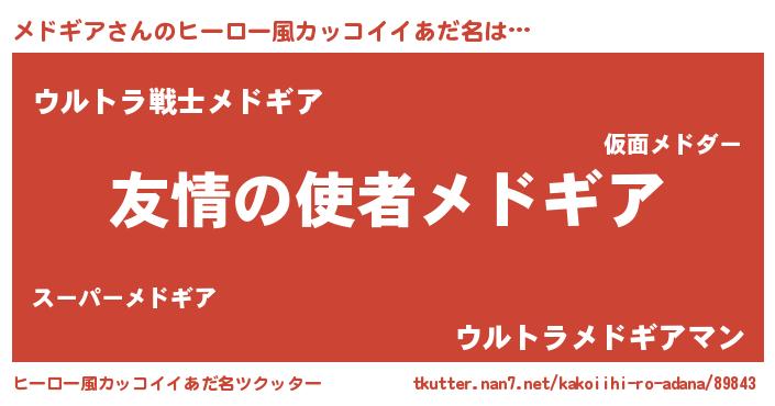 | 男性向けラノベタイトル風あだ名 | 『おまえをオタクにしてやるから、俺をメドギアにしてくれ! 』 |