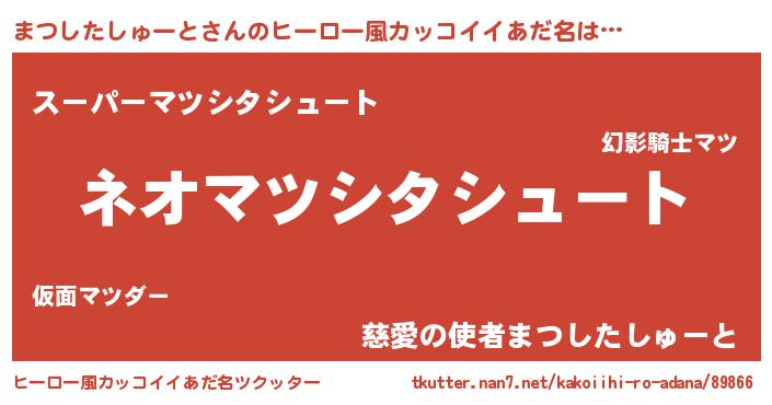 | 胡散臭い通販商品みたいなあだ名 | 『来世でも幸せになれる健康食品…その名も「まつしたしゅーと」』 |