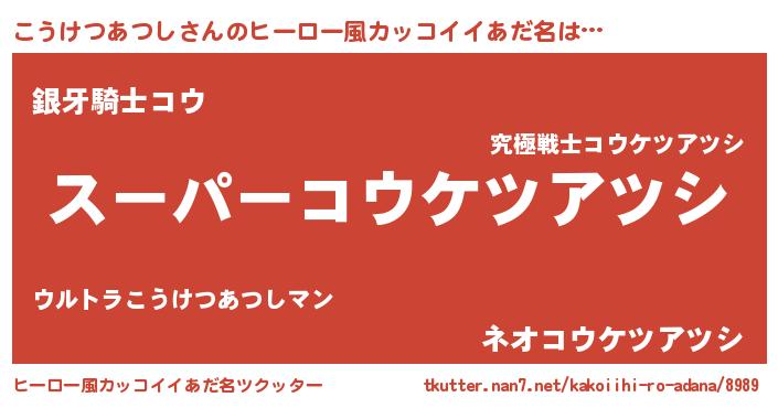 | 男性向けラノベタイトル風あだ名 | 『こうけつあつしの憂鬱』 |