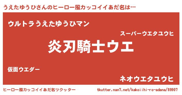 | 男性向けラノベタイトル風あだ名 | 『うえたゆうひの嫁は女の子じゃないと思った?』 |