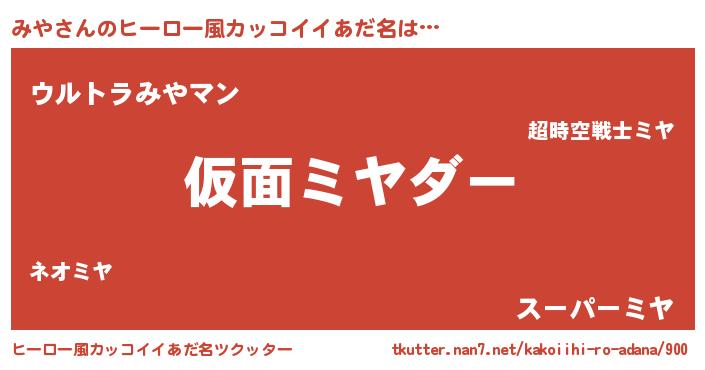 | 男性向けラノベタイトル風あだ名 | 『この素晴らしい世界にみやを!』 |