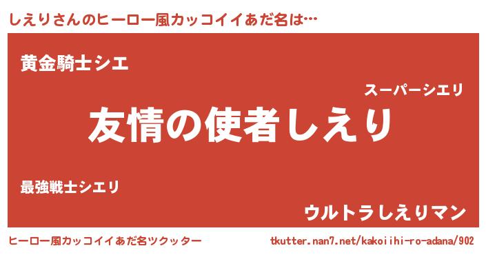 | 女子向けラノベタイトル風あだ名 | 『しえり夫妻のなれそめ』 |