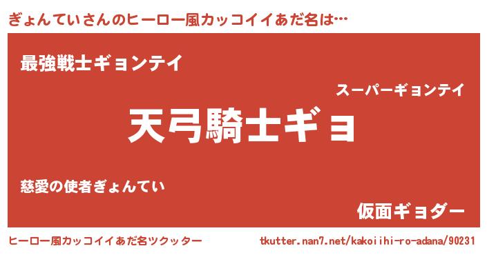 | 男性向けラノベタイトル風あだ名 | 『ぎょんていの嫁は女の子じゃないと思った?』 |