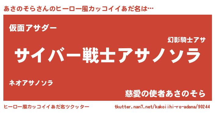 | 男性向けラノベタイトル風あだ名 | 『あさのそらに滅ぼされるだけの簡単なお仕事です』 |