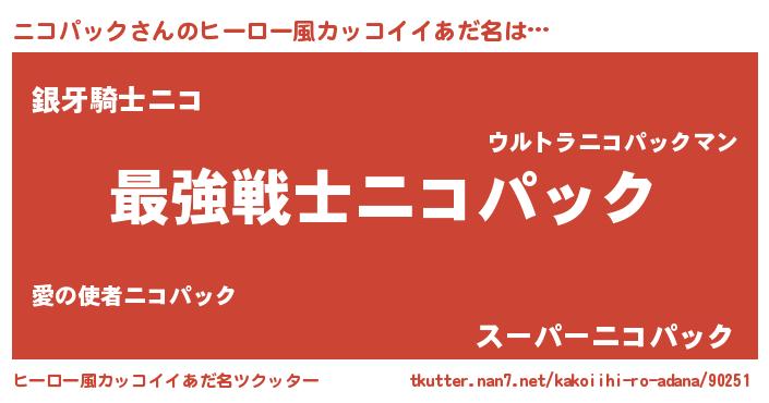 | 意味不明あだ名 | 『自称ニコパック』『ペロリンニコパック』 |