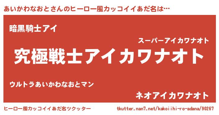 | 男性向けラノベタイトル風あだ名 | 『Re:あいかわなおとから始める異世界生活』 |