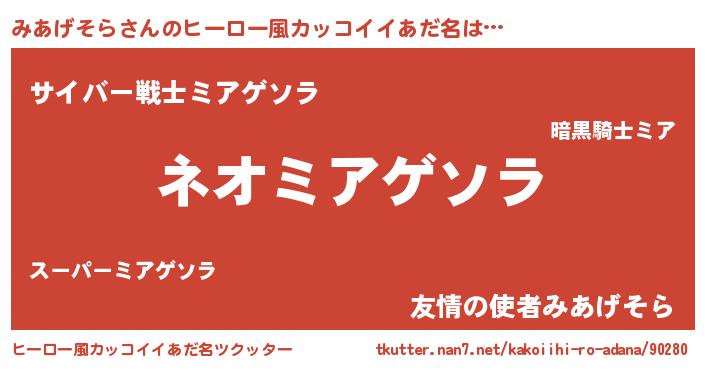 | 胡散臭い通販商品みたいなあだ名 | 『来世でも幸せになれる水素水…その名も「みあげそら」』 |