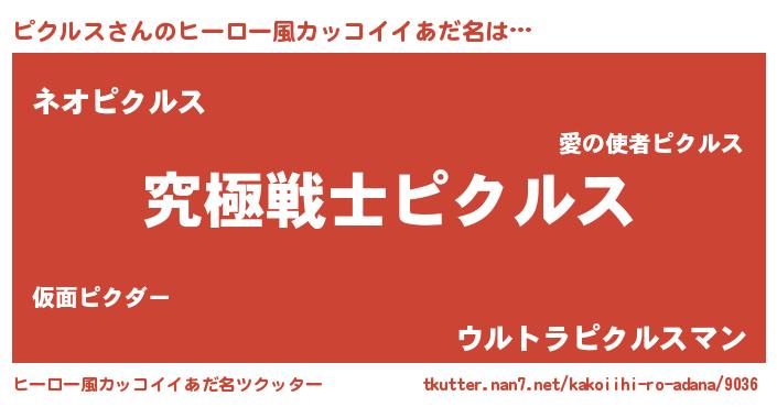 | ヘコむあだ名 | 『ピクルス(爆)』『豆乳』『ピクもー』 |