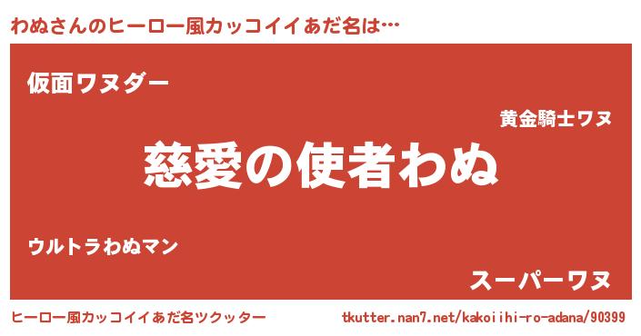 | 男性向けラノベタイトル風あだ名 | 『ノーゲーム・ノーワヌ』『わぬの憂鬱』 |