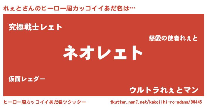 | ヘコむあだ名 | 『れぇと(爆)』『レバニラ』『れぇを』 |