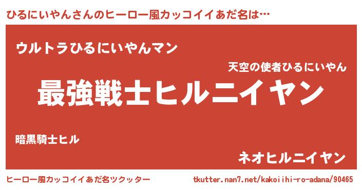| 男性向けラノベタイトル風あだ名 | 『Re:ひるにいやんから始める異世界生活』 |