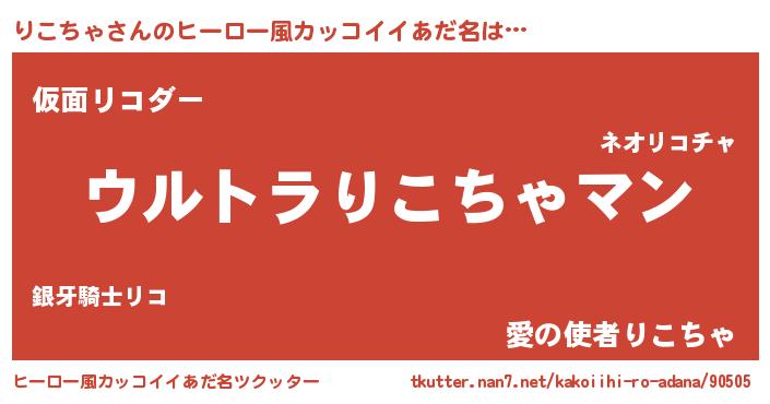 | 男性向けラノベタイトル風あだ名 | 『うちの娘の為ならば、俺はもしかしたらりこちゃも倒せるかもしれない。』 |