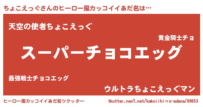 | 男性向けラノベタイトル風あだ名 | 『ちょこえっぐの憂鬱』 |