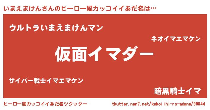 | 女子向けラノベタイトル風あだ名 | 『いまえまけんが死なない童話 林檎のいまえまけんの診療簿』 |