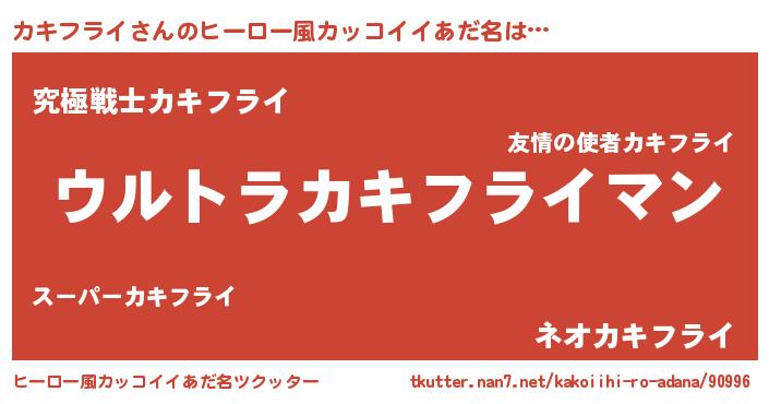 | 女子向けラノベタイトル風あだ名 | 『カキフライの玉の輿計画!』 |