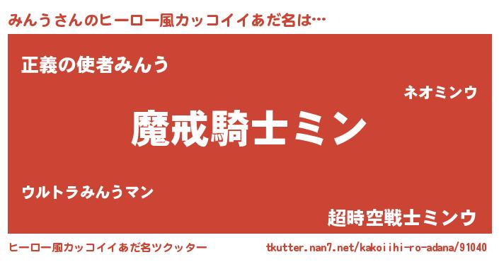 | 女子向けラノベタイトル風あだ名 | 『みんうの卵を拾いまして』 |