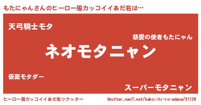 | 伝説のあだ名 | 『古文書に記された暗殺者もたにゃん』 |