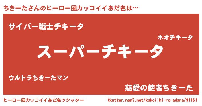 | 男性向けラノベタイトル風あだ名 | 『チキータスレイヤー』『ちきーたの憂鬱』 |