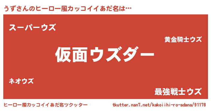 | 男性向けラノベタイトル風あだ名 | 『魔弾の王とうず』『ウズスレイヤー』 |