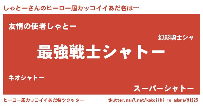 | 男性向けラノベタイトル風あだ名 | 『Re:しゃとーから始める異世界生活』 |
