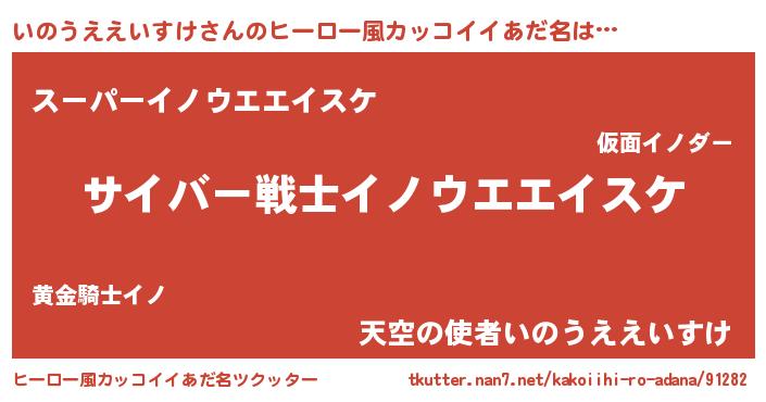 | 男性向けラノベタイトル風あだ名 | 『いのうええいすけに滅ぼされるだけの簡単なお仕事です』 |