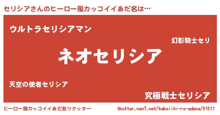 | ファンタジー風あだ名 | 『セリディッシュ』『ゼセリトゥ』 |