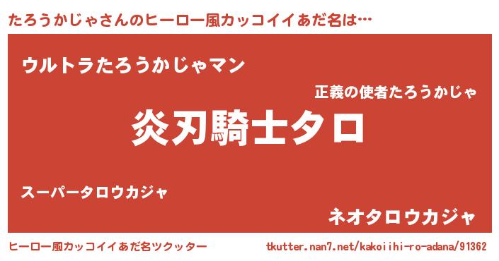 | 男性向けラノベタイトル風あだ名 | 『たろうかじゃの嫁は女の子じゃないと思った?』 |