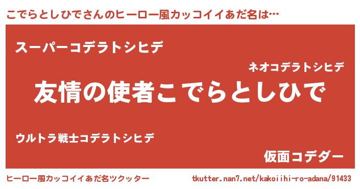 | ヘコむあだ名 | 『こでふぇ~』『こでらとしひで(笑)』 |
