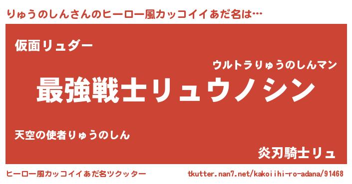 | 男性向けラノベタイトル風あだ名 | 『Re:りゅうのしんから始める異世界生活』 |