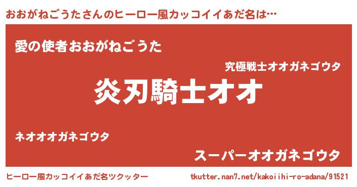 | 欧米人風あだ名 | 『ウサインおおがねごうた』 |