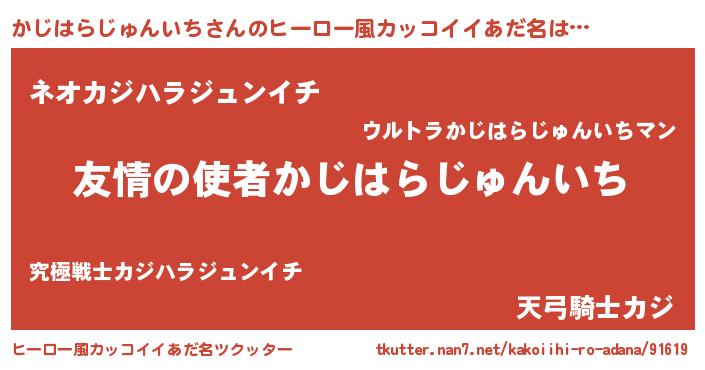 | 男性向けラノベタイトル風あだ名 | 『転生したらかじはらじゅんいちだった件』 |