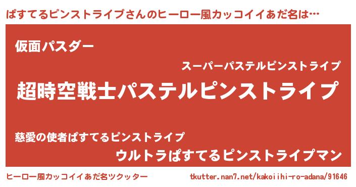 | 女子向けラノベタイトル風あだ名 | 『ぱすてるピンストライプなんてお断りですっ。』 |