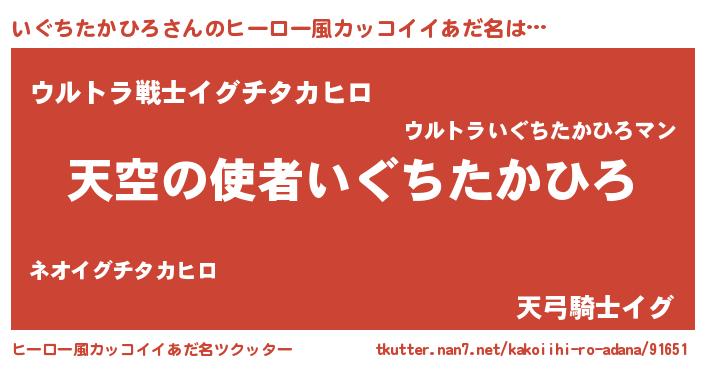 | 男性向けラノベタイトル風あだ名 | 『うちのいぐちたかひろが世界を掌握している!』 |