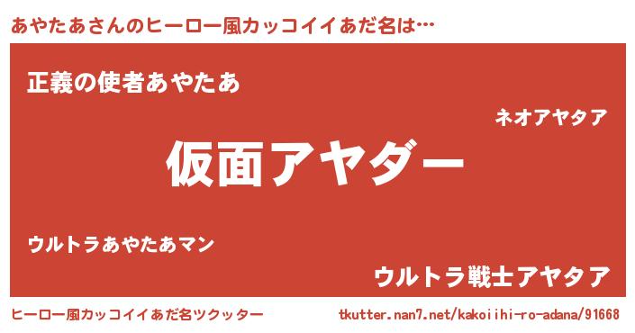 | 意味不明あだ名 | 『住所不定無職あやたあ(84歳)』 |