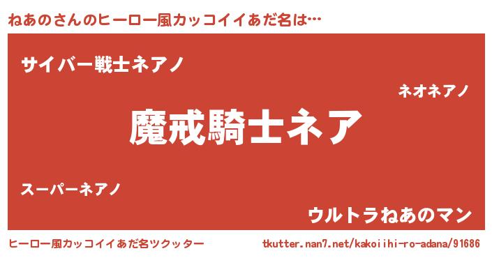 ねあのさんのヒーロー風カッコイイあだ名をツクッター!