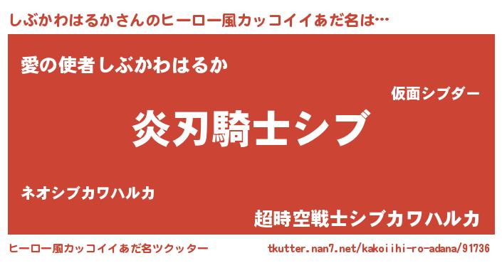 | ポケモン風あだ名 | 『ヒシブカワハルカ』『シブキング』 |