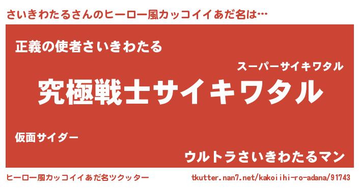 | 恥ずかしいあだ名 | 『サイキワタルデラックス』『さいっちょ』 |