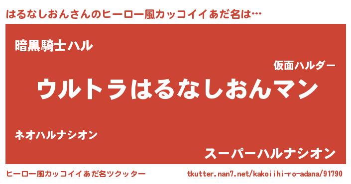 | 男性向けラノベタイトル風あだ名 | 『転生したらはるなしおんだった件』 |