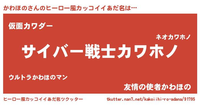 | ヘコむあだ名 | 『かわほの(笑)』『酢こんぶ』 |