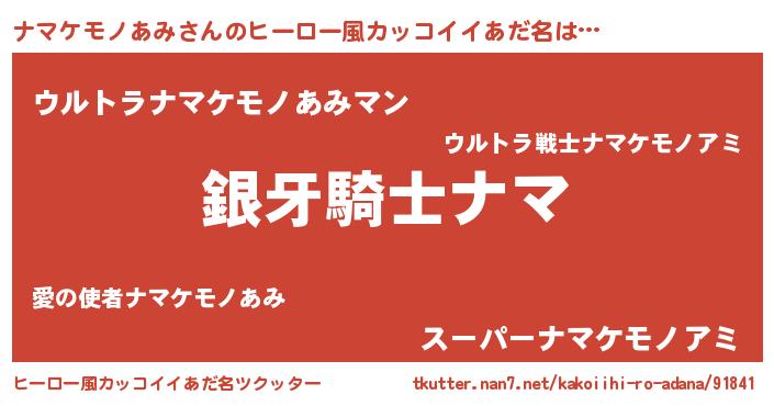 | 女子向けラノベタイトル風あだ名 | 『ナマケモノあみの卵を拾いまして』 |