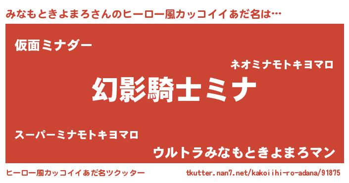 | 男性向けラノベタイトル風あだ名 | 『みなもときよまろの嫁は女の子じゃないと思った?』 |