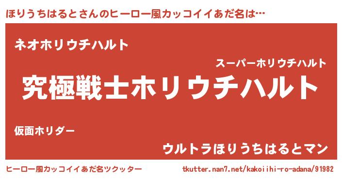 | 男性向けラノベタイトル風あだ名 | 『Re:ほりうちはるとから始める異世界生活』 |