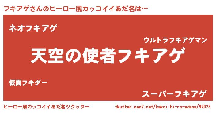 | 男性向けラノベタイトル風あだ名 | 『フキアゲ~年齢イコール彼女いない歴の魔法使い~』 |