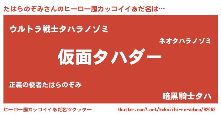 | 意味不明あだ名 | 『住所不定無職たはらのぞみ(3歳)』 |